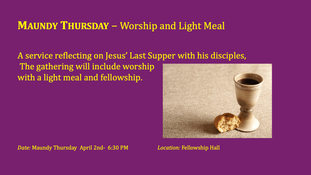 An hour of traditional worship with a sermon and hymns. Communion served on the first Sunday of each month.